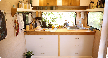 Tiny living spaces require smart solutions. Whether you’re living in an RV, on the road traveling or just taking some camping trips, we help optimize your RV or camper for both beauty and function.